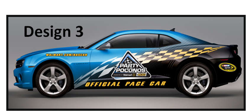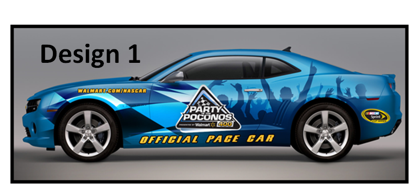Now that we have the name of the race, favorite pierogie, we move on to the final stage of voting for you fans–the Pace Car Design! Just like before, you can vote for your favorite Pace Car Design at Walmarturl.com/fandriven400. Voting opened on May 7 and will continue through May 27. From the looks of the designs, this may be a tough decision for you guys out there. Besides, how can one choose between different designs on a Chevy Camaro? Either way, you can be part of the action by choosing the Pace Car Design. Here are your choices…
